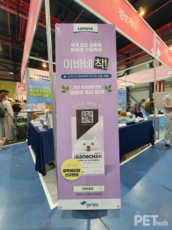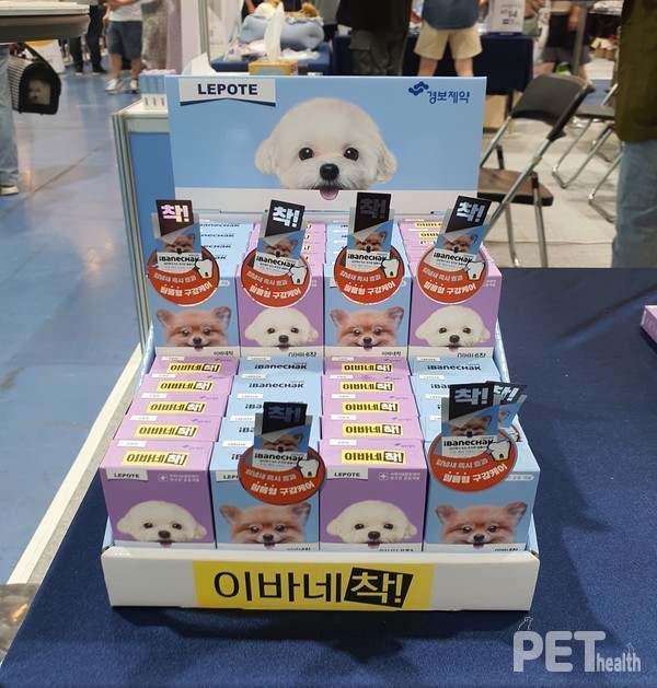 경보제약이 이번 전시회에서 선보인 제품은 ‘이바네착’ 닭고기 향, 블루베리 향 2가지다. 앞으로 ‘이바네착 플러스’라는 이름으로 덴탈케어라인 제품 2가지를 더 선보일 예정이다.