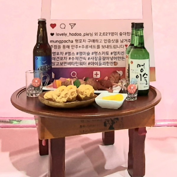 ‘멍포차’(대표 박선애)는 3년 전부터 박람회에 사람이 먹는 안주와 술을 본 따 만든 반려동물 전용 음료와 간식을 출품하고 있다. 이번 서울펫쇼를 찾은 관람객들은 소주병과 맥주병 모양의 유리병과 멍포차 부스 앞에 차려진 소주, 맥주와 화려한 산해진미에서 눈을 떼지 못했다.