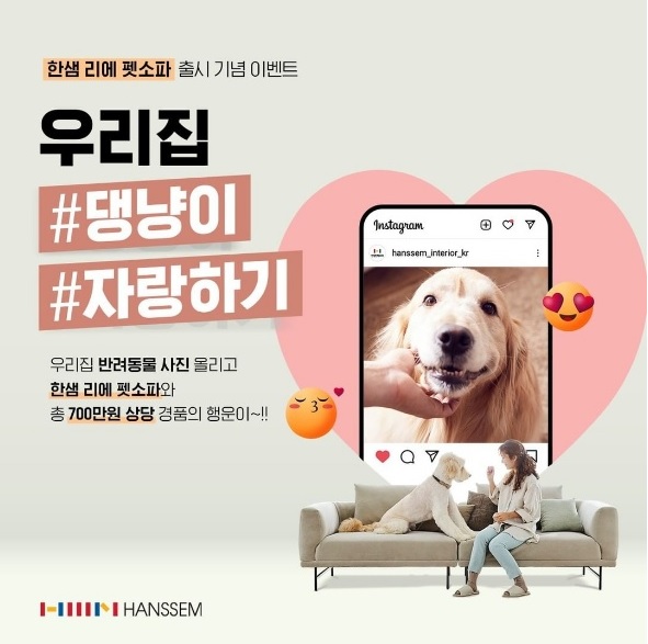 한샘이 리에펫소파 출시 이벤트를 내달 2일까지 진행한다. 사랑스런 댕냥이도 자랑하고 ‘리에 펫소파’와 총 700만원 상당의 경품을 얻을 수 있다.