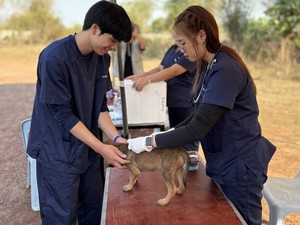 국경없는 수의사회 라오스지부는 지난 1일 싸이타니구 나쌀라 마을에서 광견병 무료 예방접종 및 내외부 기생충 제제 투여를 포함한 수의료 봉사활동을 실시했다.[김진강 기자 / 빠른 뉴스 정직한 언론 ⓒ뉴스펫]