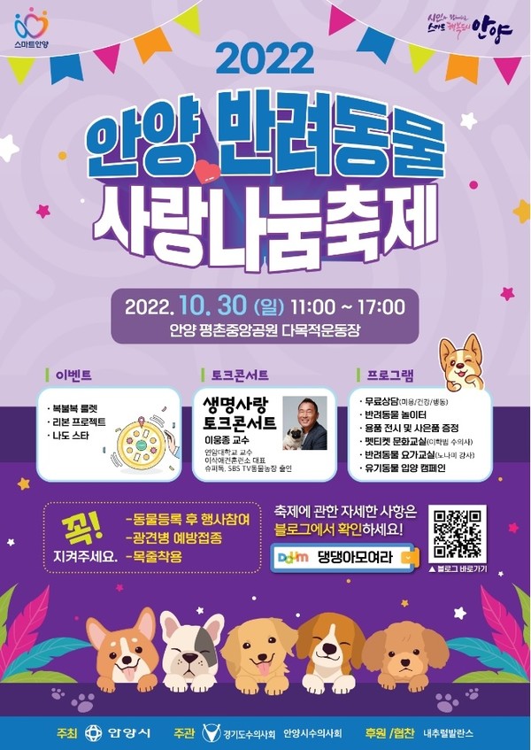 경기 안양시가 오는 30일 평촌중앙공원 다목적운동장에서 ‘2022 안양 반려동물 사랑나눔축제’를 개최한다.