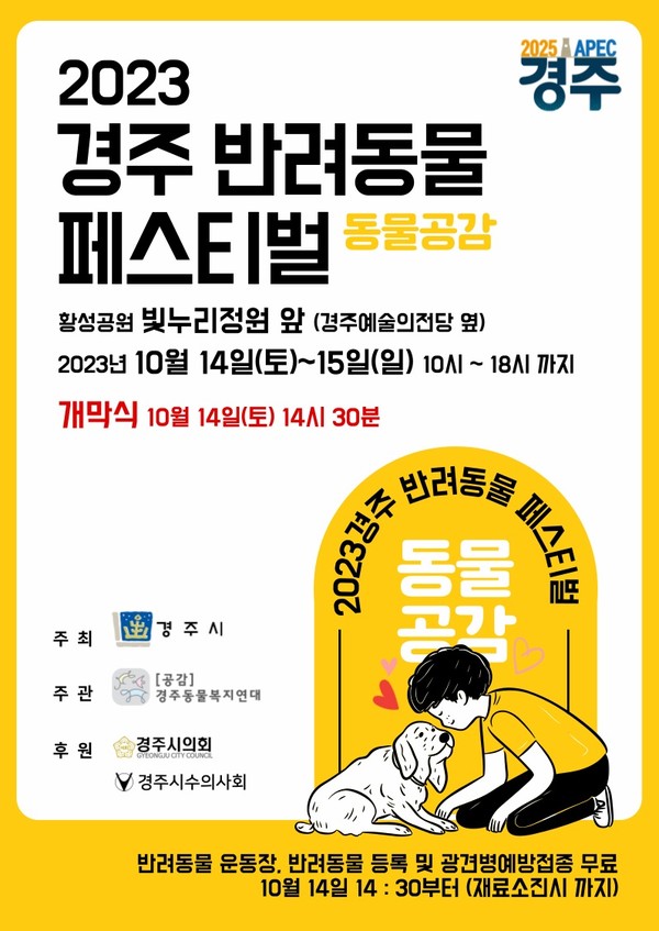 경북 경주시가 오는 14~15일 예술의전당 인근 빛누리정원에서 반려동물 페스티벌을 개최한다고 3일 밝혔다.
