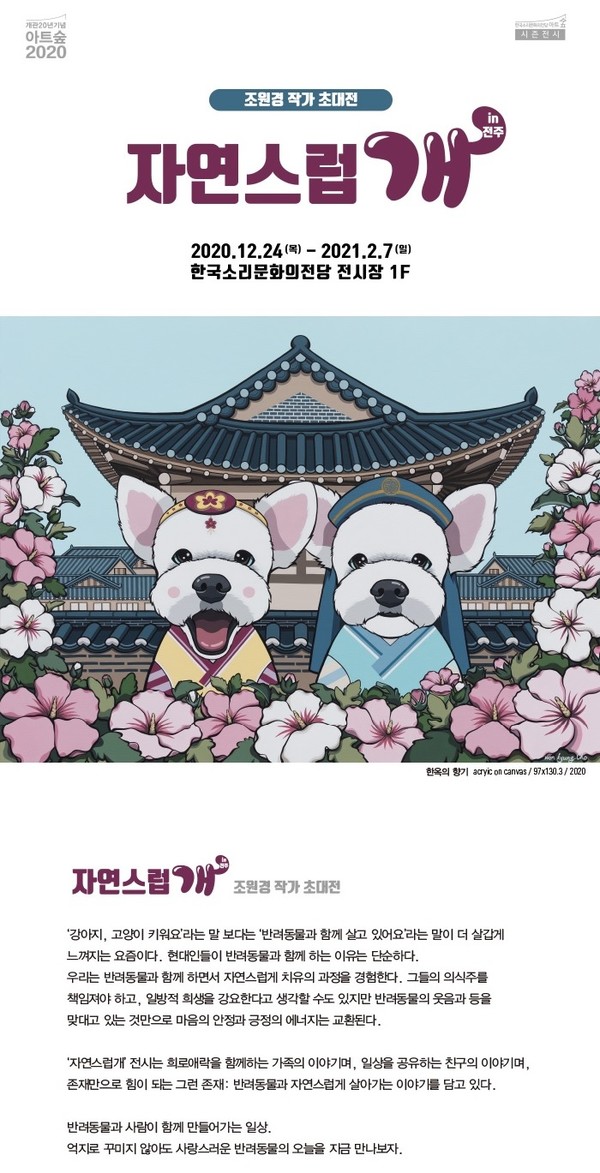 한국소리문화의전당은 반려동물과 사람이 함께 살아가는 일상을 주제로 한 '자연스럽개 in 전주' 초대전을 24일부터 내년 2월 7일까지 한국소리문화의전당 전시장에서 개최한다고 23일 밝혔다.