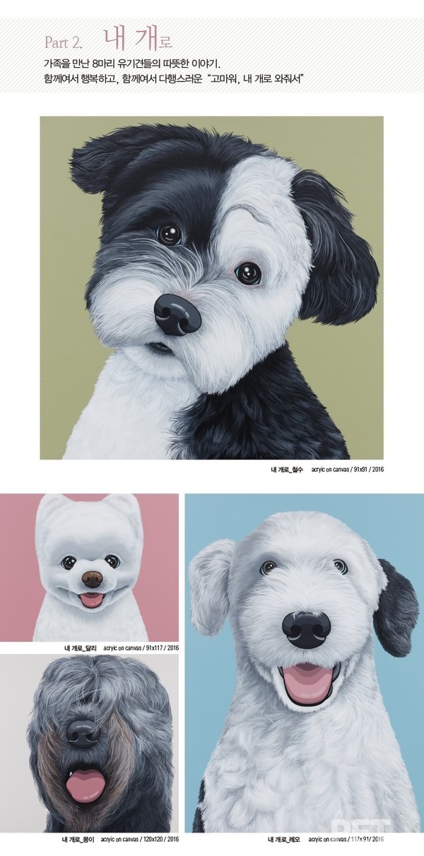 지역 최초로 반려동물 입장이 가능한 이번 전시회에 초대된 조원경 작가는 "코로나 블루라는 말이 나올 정도로 요즘 우리의 일상은 우울하다"며 "반려동물들의 웃음을 통해 지치고 힘든 일상에 조금이나마 위로가 되고 즐거운 에너지가 전해졌으면 한다"고 말했다.